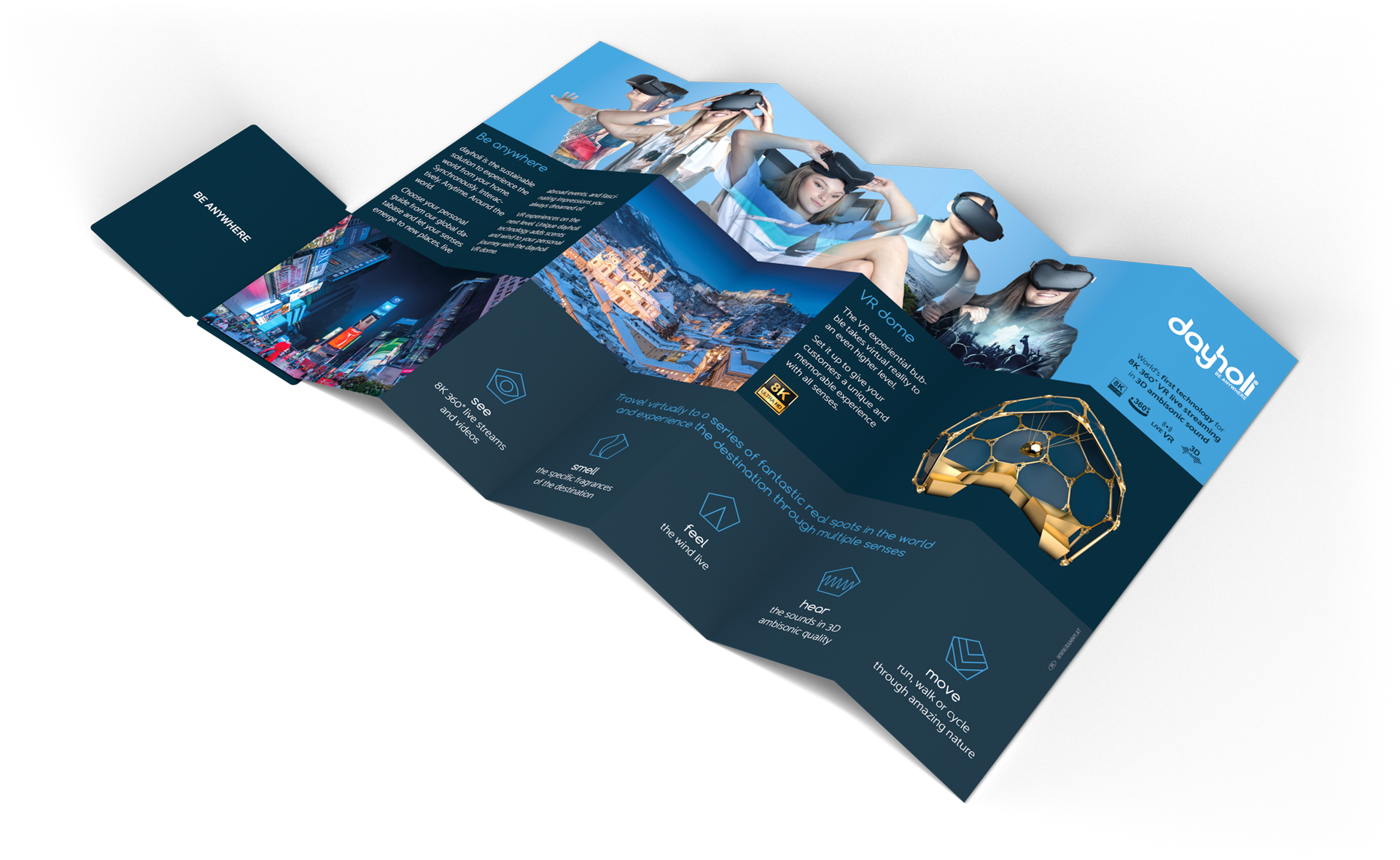 Mit der innovativen dayholi VR-Technologie mit interaktiven 8K 360° Live-Streams wird man in neue Realitäten gebeamt. dayholi ist die nachhaltige Lösung, um die Welt von zu Hause aus zu erleben, ohne physisch reisen zu müssen. Egal ob Reisen, Remote Shopping, Events, Sport oder Bildung, dayholi bietet eine Vielzahl an Erlebnissen und Andwendungsmöglichkeiten. Und mit 360° Video Produktionen bleiben exklusive VR-Inhalte langfristig erlebbar. Mit allen Sinnen kann man die virtuelle Reise mit dem 3 x 3 Meter großen VR Dome erleben – Wind und Duftstoffe bringen das VR-Erlebnis auf das nächste Level.